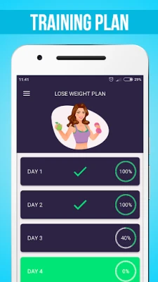 - Various workouts for 30 days - Animated exercise demonstration - Diet plan for 30 days with a daily schedule and various products - Weight loss progress - Statistics on the calories burned - Gradually increases exercise intensity