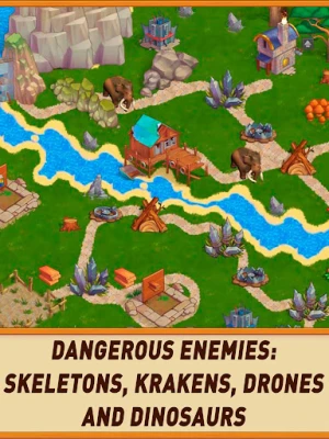 -Dangerous enemies: Skeletons, mammoths, sea monsters, drones, and dinosaurs.