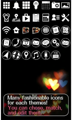Hearts of light sparkle in the darkness in this romantic Theme+.* Fill your device with the light of love!
