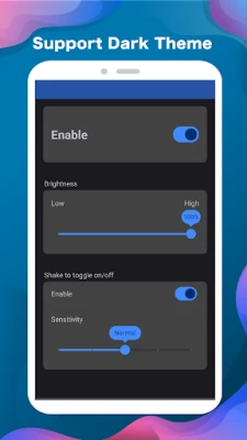 - Unique feature: shake device to quickly disable screen dimming
