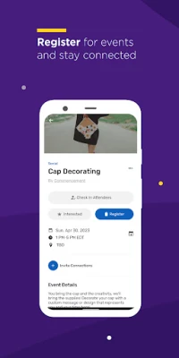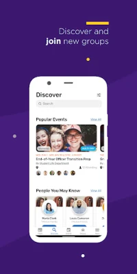 Easily browse and RSVP for upcoming events, join organizations, and share news with your network. Also, find and access resources on campus. Key features include: