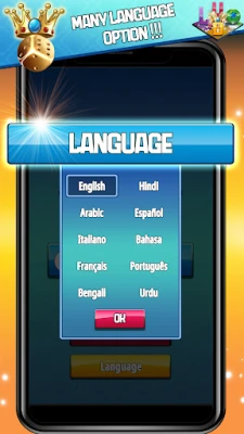 English, Hindi, Italiano, Spanish, Portuguese, French, Arabic & Indonesian languages are supported in this Ludo game.