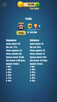 Play classic Ludo Pachisi with your friends or simply with people all around the world and be a star. Start playing now and climb the ladder to become a king of the Ludo Pachisi ! You can see your progress in a Leaderboard to compare how well you are doing against the other players.
