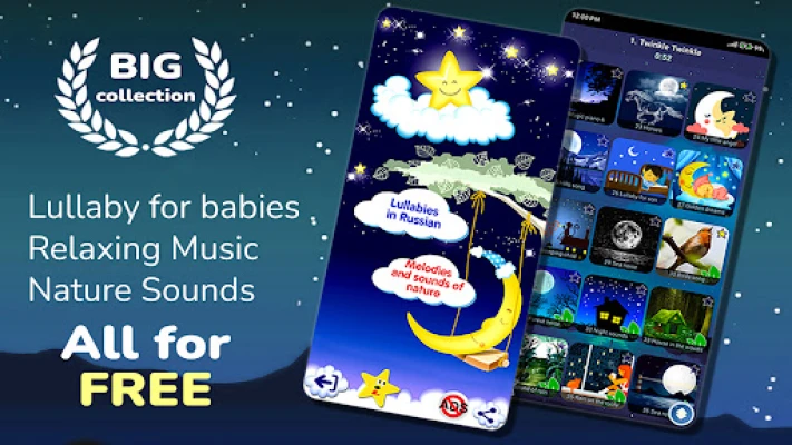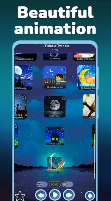 - you can mark your favorite lullabies for children (long press on the song icon) and they will be added to a separate list of favorites (switch - long press on the star icon at the bottom left). Selected baby lullabies and music box melodies are saved and on subsequent launches of the application you will not you need to recreate the list.