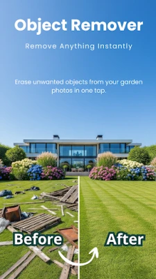 Upload a photo and manually paint over every part of the object you want to remove using the built-in brush tool. The app does not automatically select objects β accurate results depend on fully covering the unwanted area. Once processed, the marked object is removed and the background is naturally reconstructed to match the surrounding garden.