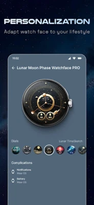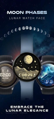 Elevate your Wear OS smartwatch style with the moon-inspired watch faces. It combines elegance and functionality. The Lunar Moon Phase Watch Faces app offers beautifully designed dials that bring celestial charm to your Wear OS device.