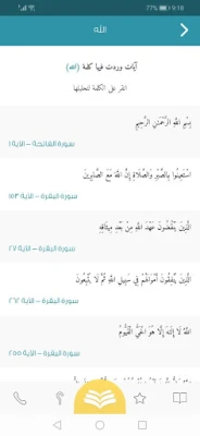 4- اختر إحدى هذه الكلمات وستظهر الآيات التي تحتوي على هذه الكلمة او ما يشابهها ممن تحمل نفس الجذر