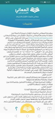 معجم المعاني لكلمات القرآن، نسخة كاملة عن صفحة معجم المعاني لكلمات القرآن في موقع المعاني almaany.com، لمن أراد الحصول على نتائج سريعة من دون الحاجة إلى اتصال بالشابكة ( الشبكة العنكبوتية). ربما تحتاج إلى العودة للموقع حيث تكون التحديثات والإضافات هناك أكثر. ينبني هذا المعجم على تحليل الكلمة القرآنية واستخراج جذع الكلمة وجذرها بعد تجريدها من السوابق واللواحق. فمثلا كلمة فأسقيناكموه تحلل إلى ف + أسقي + نا + كم + و + ه ، فالجذع يكون "أسقي " والجذر سقي. ونورد هنا معنى "أسقى" و "سقي" وكذلك معناهما باللغة الأنجليزية لمن يدرس القرآن من غير العرب. ونورد كذلك كل الكلمات التيي تحمل نفس الجذر. ونورد تفسير الآية من التفسير الميسر وتفسير الجلالين. لا نورد أكثر من هذا، لأن البرنامج موجه للمتعلمين ومن يريدون معرفة المعنى البسيط بدون تفصيل، وليس لمن يريد الاختصاص والتعمق، فهذا مجاله الكتب والبرامج المتخصصة.