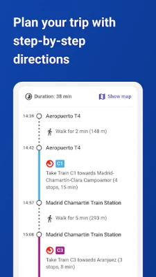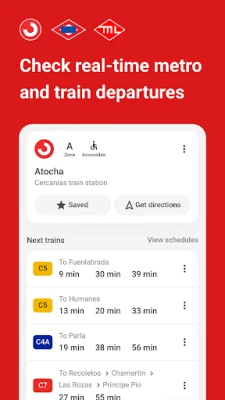 - MAPS: View maps for Metro, trains, and EMT buses — even offline.