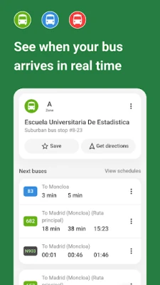 - REAL-TIME DEPARTURES: Check real-time arrival times for any interurban bus, EMT bus, Cercanías train, Metro, or Light Metro stop across the Madrid region. See live wait times for all transport types managed by the Madrid Regional Transport Consortium (CRTM).