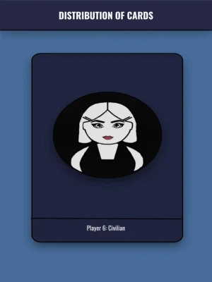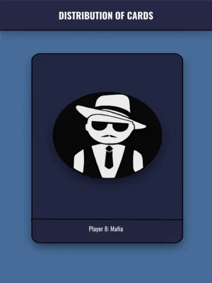 The application distributes cards to the number of players you have chosen (from 5 to 21 players). Also in addition to standard roles (mafia, civilian, doctor, sheriff) added non-standard roles for the game (journalist, maniac, don mafia, lover)