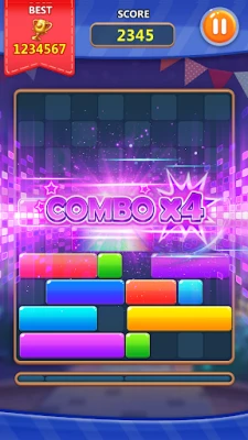 This is a trending puzzle game recently, a really good puzzle game in recent years. The game’s rule is very simple. Magic Blocks with colorful blocks are being pushed up from the bottom. You need to move one block horizontally to the left or right, if there is a space under it, the magic blow will drop down. While it's falling down to the color block beneath, if they form a solid row (a row without empty space), the row will be exploded and you score up. Some special magic blocks are called Rainbow blocks. When they explode, they will make other color blocks close to its edge exploding together. That's all the rule of this game Magic Blocks: Falling Puzzle Dropdom. Quite simple, right!