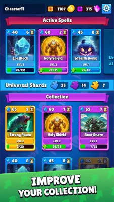 Challenge players from around the world in our real-time PvP mode, where tactics, strategy and cards level up are key to victory. Play chess, rise through the ranks, prove your skills, and become the ultimate chess pro! Show off your strategies and outsmart your opponents in intense virtual battles that will keep you on the edge of your seat.
