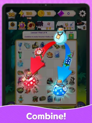 Merge various magic materials to create magic items. Merge mystical herbs in a glass vial into a magic potion! Merge parchment with the power of magic mushrooms to create a dark magic scroll. But no need to stop there...! Create beautiful magic costumes, colorful magic equipment, and even delicious magic food as well! How many different magic items can YOU create?