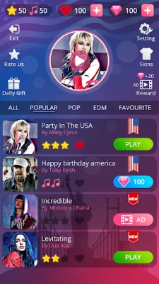 Features: Every genre of music including Kpop! Best visual Graphics Easy yet challenging piano music game Best tiles hop music experience Tap or hold the tiles for best EDM fun