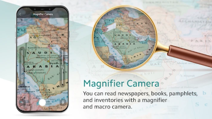This application turns your phone into a digital magnifier. You don't need to carry a magnifier anymore. When you want to magnify small objects and text, a Magnifier Camera & Flashlight can be the solution.