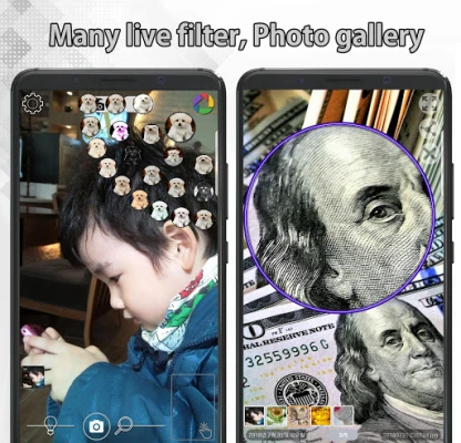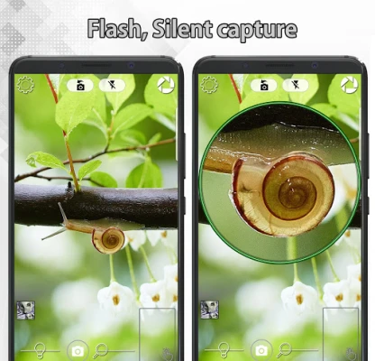 - You can shoot with silence. - Brightness and flash can be adjusted. - You can view the gallery of the pictures you have taken.