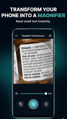 Whether you need to read a dark restaurant menu, inspect a prescription bottle, or zoom in on tiny objects like a loupe, this app provides crystal clear magnification.