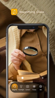 Features: - Magnify: From 1x to 10x. - Flashlight: Use the flashlight in dark places or at night. - Photo: Save the magnified photo to your phone. - Freeze: Freeze the frame to view the magnified photo more clearly. - Settings: Adjust the magnifier's settings to suit your specific needs.
