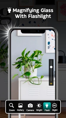 Install Magnifier with Flashlight android app in your Smartphone and turn it into a smart magnifying glass with ease and take zoom in, magnify pictures with magnifier camera.