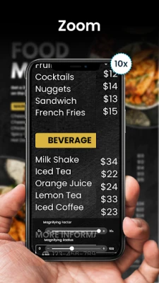 Have you ever been stuck in any place like a hospital, restaurant, etc where you can not read the small print menu, or prescription don't worry use this magnifying glass with light app to read small print with a magnifier camera, This magnifying glass app automatically focuses the small text and with the help of magnifying glass for android app small text turn into large text. You can also zoom in and out magnifier camera.