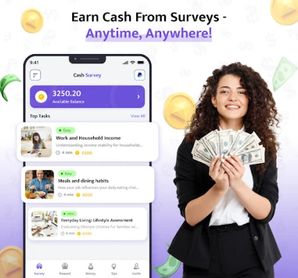 Looking for an easy way to earn rewards and extra cash? With Make Money - Earn Daily Money App, you can share your opinions and get rewards! Complete simple surveys, earn points, and redeem them for real cash or exciting rewards - all from your mobile.