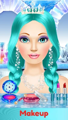 To go to the makeup salon, tap on the arrow at the top right of your screen. Choose a hair style and eye color for the doll, and apply eye shadow, eyeliner, mascara, blush and lipstick! Youβll have a lot of beautiful make up colors to choose from! Then select earrings and a necklace for the girl, and depending on the makeup game, either fashionable sunglasses, or a headpiece such as a princess tiara, a crown or a stylish headband!
