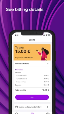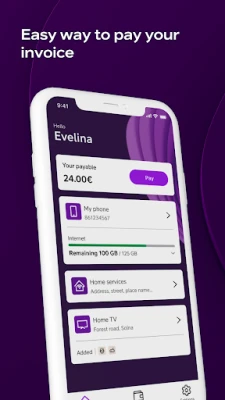 • Pay your bill: never miss another payment. You can easily view and pay your bills within seconds directly in the app. A pop-up will appear on the Overview screen once your bill is ready.