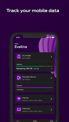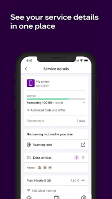 • Check mobile usage and limits: stay updated with your mobile data, minutes, and SMS usage on the Overview screen. All real-time details on total and remaining usage will appear as soon as you open the app.