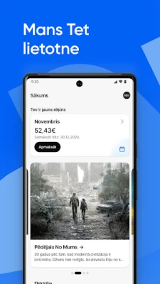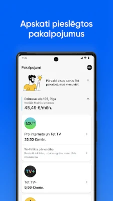 Lejupielādē Mans Tet lietotni un seko līdzi rēķiniem, veic to apmaksu, apskati sev svarīgo informāciju par pakalpojumiem un īpašiem piedāvājumiem.
