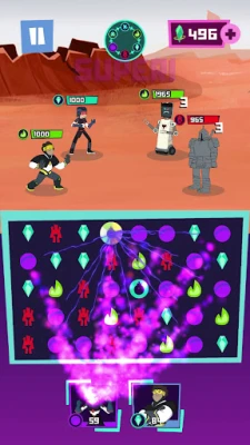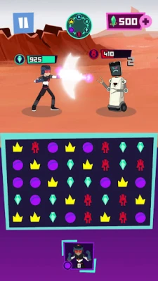 Blink is trying to take over the city with hoards of villains and it is up to you to stop him! Use your match-3 skills to help Mansour and his friends battle the invaders in one-on-one combat. Unlock new characters and build their skills to take on multiple enemies. Do you have what it takes to save the city?