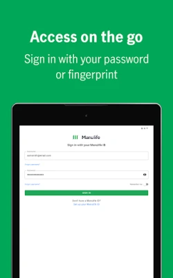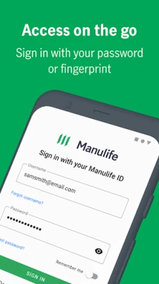 Rest assured, your personal data is always kept confidential and encrypted. You’ll need valid sign in information to use the app. Register directly from the app or at https://www.manulife.ca/.