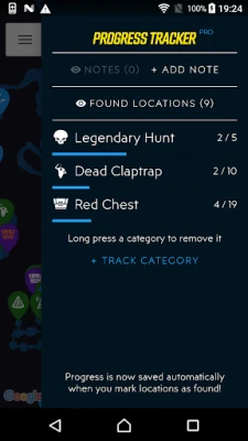 • Progress Tracker - mark locations as found and track the progress of your collectables.