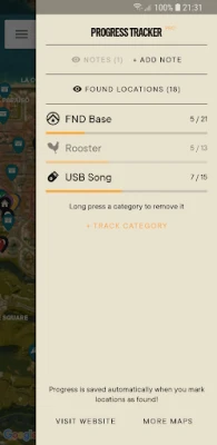 • Progress Tracker - mark locations as found and track the progress of your collectables.