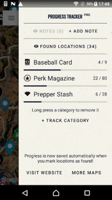• Progress Tracker - mark locations as found and track the progress of your collectables.