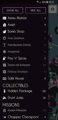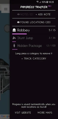• Progress Tracker - mark locations as found and track the progress of your collectables.