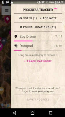 FEATURES: • Over 300 locations - data pads, spy drones, ark chests, wasteland wizard spawns & more! We're adding more locations as we find them! • Quicksearch - just type the name of a location to quickly find what you're looking for. • Sync progress with the website: https://mapgenie.io/rage-2 • Progress Tracker - mark locations as found and track the progress of your collectables. • Take Notes - mark places of interest by adding notes to the map.