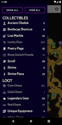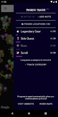 • Progress Tracker - mark locations as found and track the progress of your collectables.