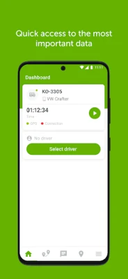 The Mapon Driver app ensures optimal fleet management. In combination with the Mapon fleet management software, it gives company drivers and other employees a multi-functional tool for vehicle data tracking, driving & work management. The app lets drivers: