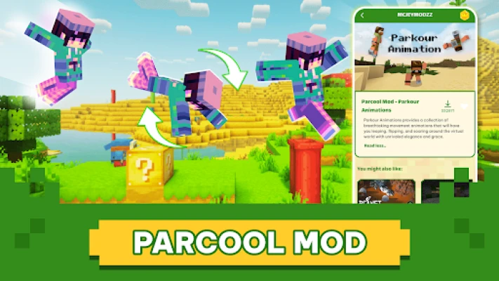 * Conquer Epic Challenges: Test your skills with parkour maps inspired by Parcool mod animation, battle it out in PvP minigames, explore hidden chests in intricate house builds, or wander through sprawling cityscapes.