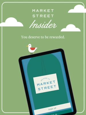 Put your earned points to work by converting into rewards in the MarketStreet Insider App. Points unlock $5, $10, $20, and $50 dollars-off rewards within the Insider mobile app (check reward terms for points required). Rewards can be redeemed in-person at participating businesses at MarketStreet.