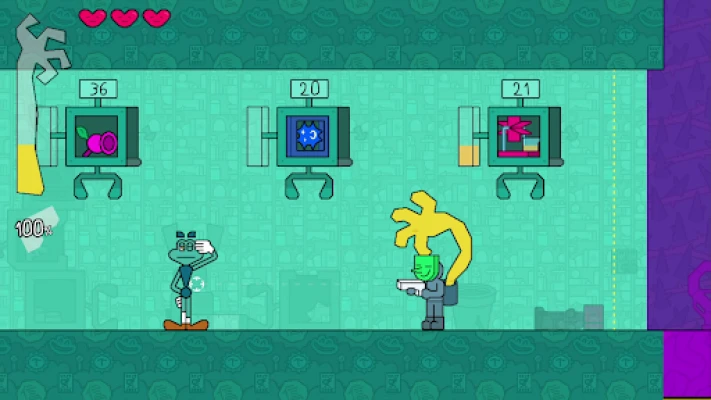 Mask Around is a 2D shooter platformer roguelite where every drop of juice counts. This prized yellow goo will boost your moveset in... unexpected ways. Fly, jump, and punch with the gigantic hand coming out your backpack, or decide to take some risk and invest your precious juice in items and weapons.