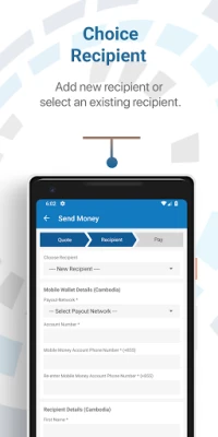 • Mobile Money Account: An instant service that enables you to send money directly to recipient’s mobile money account, no banking transaction or agent required. This service is for the millions of people around the world who do not have banking access or who are unable to access money transfer agencies right away.