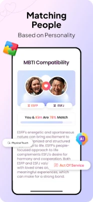 We know that true connections are built on similar interests and compatible personalities. That's why this AI matchmaker takes matchmaking to the next level. Through a blend of advanced algorithms and the renowned Myers-Briggs Type Indicator (MBTI Personality type), we analyze your preferences to pair you with individuals who resonate with your passions, values, and aspirations.