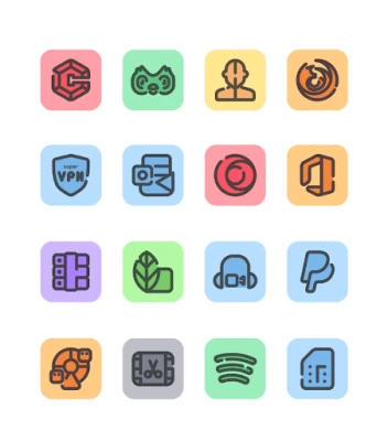 Material You Square is a line Square icon pack with a design inspired by material you. It has a bright pastel color with a darker color in the middle which makes it different from other similar icon packs.