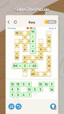 - Engaging Puzzles: Solve a variety of math problems, from simple arithmetic to complex equations. - Multiple Levels: Progress through increasingly difficult levels designed to challenge your skills - Daily Challenges: Keep your skills sharp with new puzzles every day! - Fun for All Ages: Accessible puzzles for kids and adults alike, making learning math fun!