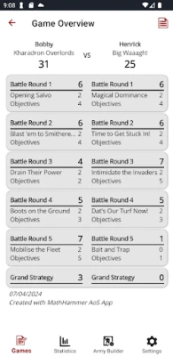 Keep track of Battle Tactics, Points, Rules and Turns when playing games.