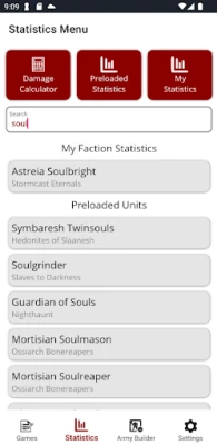 You can search for units in the app, either your own creations or standard warscrolls, and quickly find their stats and characteristics.