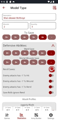 Have you ever wondered if its better to include one unit over another in your army list? Now you can easily duplicate an armylist, make small changes and compare the aggregate stats between lists!