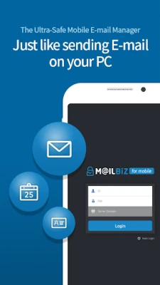 M@ILBiZ syncs with exisitng PC outlook settings for user to use email, calendar and contacts easily.